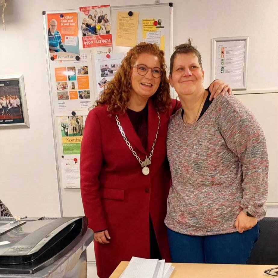 De burgemeester maakte een rondje langs alle 7 stemlocaties in ons dorp om een kijkje te nemen en iedereen succes te wensen. Daarnaast gaf ze bij De Voorhof uitleg over de verkiezingen aan groepen 7 en 8 van basisschool De Olijfboom.