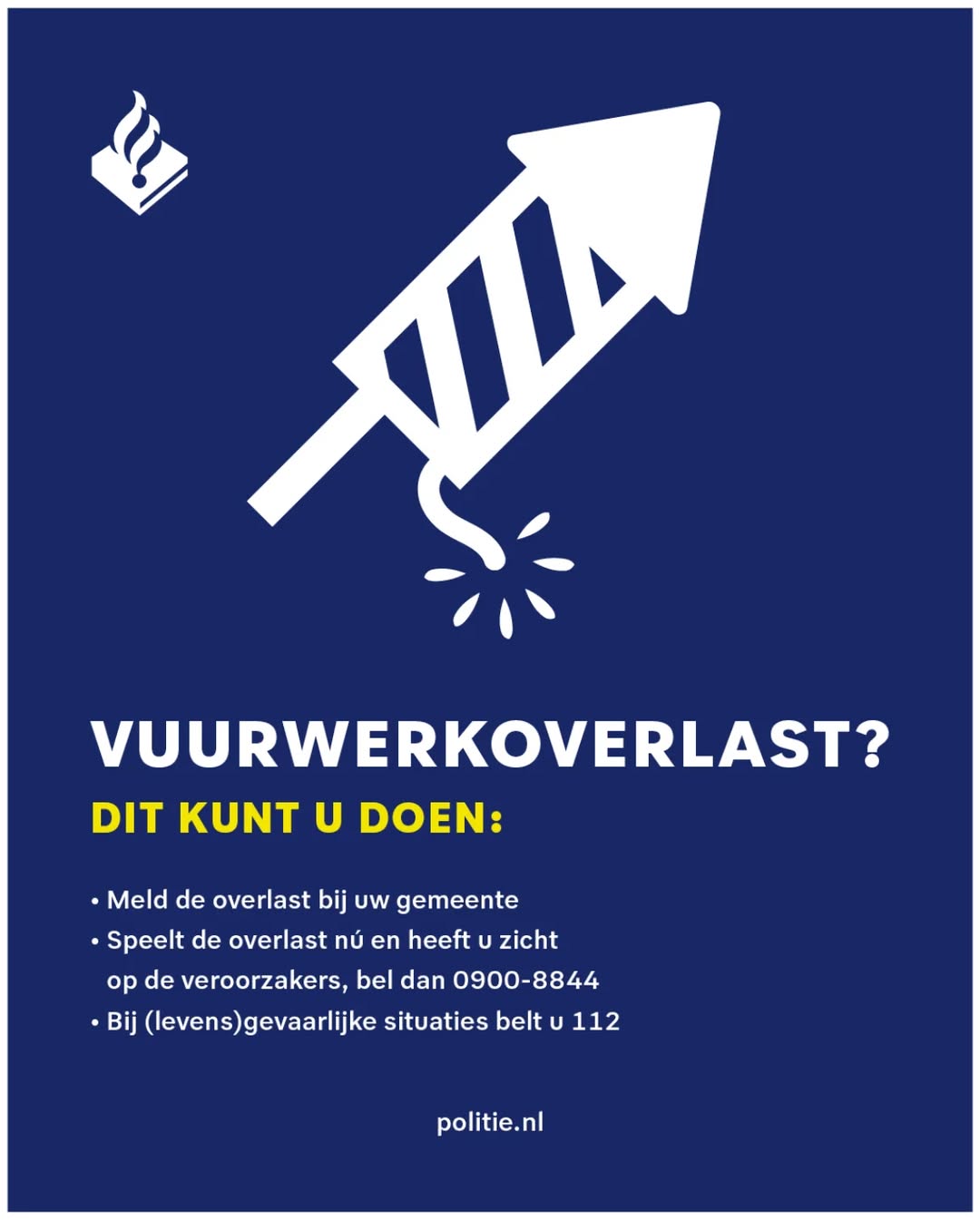Vanavond zijn wij binnen Leusden en Woudenberg bezig met de overlast van vuurwerk. Wij zijn in dienst tot omstreeks 22:00 uur. Mocht u veel overlast ervaren kunt u het volgende doen: