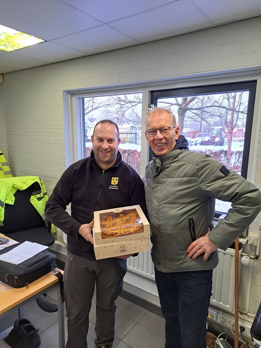 Onze buitendienst ontving een heerlijke taart van de organisatie van de Florijn Winterloop als dank voor de fijne samenwerking rond de 37e editie van hun jaarlijkse evenement, dat zaterdag 2 januari plaatsvond.